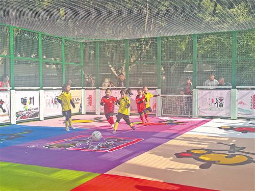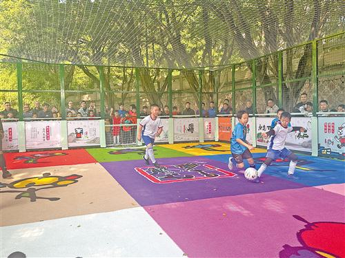 据了解,该场地由中国彩书创始人、广东省工艺美术大师何柏俊打造,他秉持“文化和创意反哺足球”的初心,以彩书国学为赋能核心,将国学经典、客家文化与足球运动深度融合,构建起“德育、美育、体育”三育并举的成长课堂,为青少年勾勒出“做好人、读好书、踢好球”的多维成长蓝图。“彩书微足球项目灵活多变,不仅适用于社区、景区、街区、商圈等多样化的日常微场景,还能充分利用城市中未得到充分开发的微型空间,甚至是那些不规则的三角地带,使其焕发新的活力。”何柏俊表示,希望通过此次赛事,以及在嘉应古城旁打造的四个足球场地,吸引更多人关注笼式足球,让孩子们在体验与竞技中收获快乐、提升球技、爱上足球。
